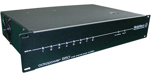 Octopower 850 是一款商用多通道功率放大器,专为固定安装系统所设计。 Octopower 850 共有 9 个音频输入通道, 50W/ 通道 @4 欧姆全频带功率负载。任意两个通道可进行桥接使用,桥接输出功率为 100W @ 8 欧姆。在其***大配置的桥接模式下,可提供 1 个 50W@4 欧姆通道和 4 个 100W@8 欧姆通道的功率输出。另外, Octopower 850 还带有一个高电流的 C 类报错触点继电器,可以用来切换扬声器电平、辅助系统设计人员完成一个基本的备份功能,或者连接外部报警装置或者管理系统。所有接口都位于设备的背板上,包括一条可插拔的电源线。凹陷式信号电平控制旋钮位于设备的背板,可以防止对电平的误操作调整。前面板带有颜色状态指示的故障状态指示灯以及 9 个通道的信号电平 LED 指示灯。 Octopower 850 采用了强制风冷系统以及标准的 2U EIA 设计。 Octopower 850 功放可以同任何媒体矩阵系统配合使用。